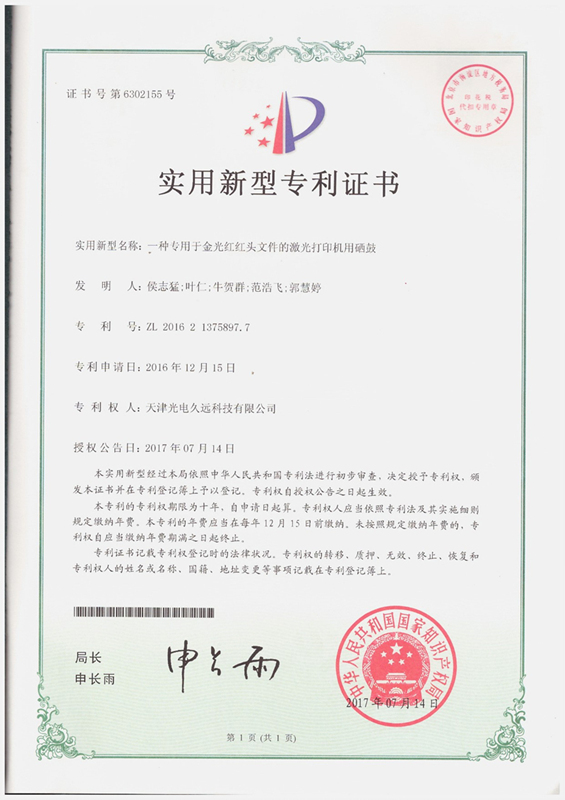 一種專用于防偽打印文件的激光打印機用正電硒鼓-實用
